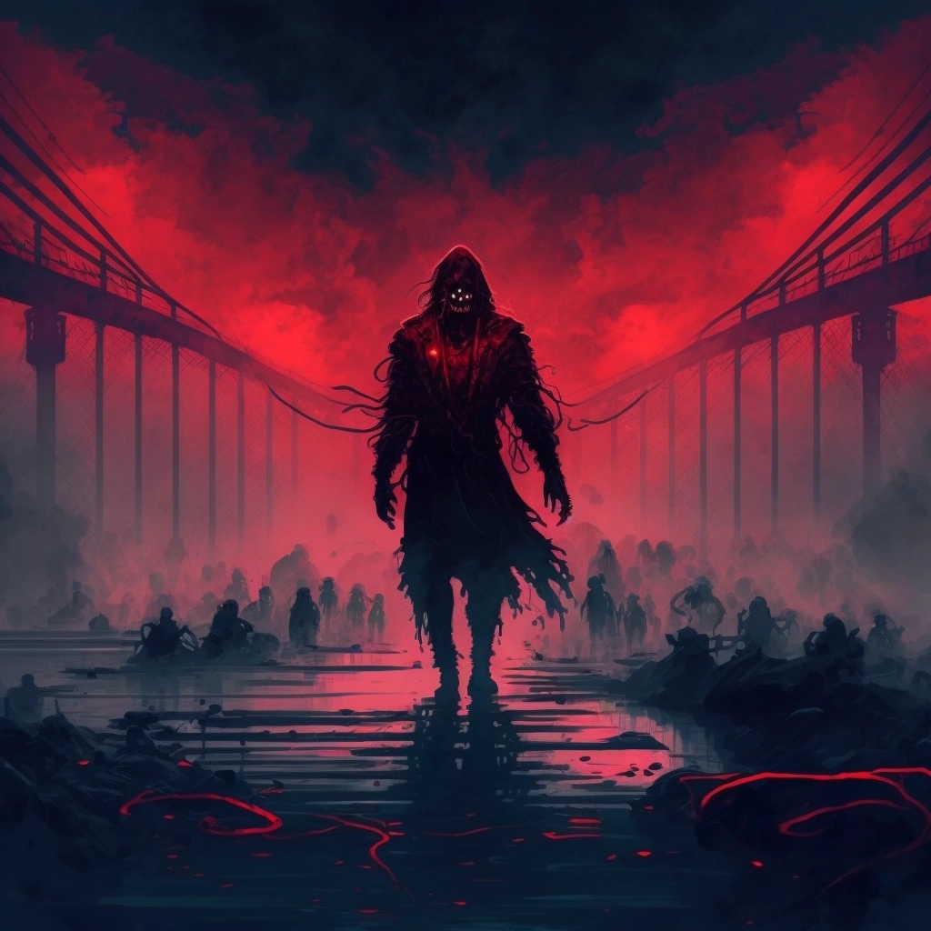 Dark and somber tones dominate, crafting a grim and detailed world filled with macabre elements that evoke mystery and tension.